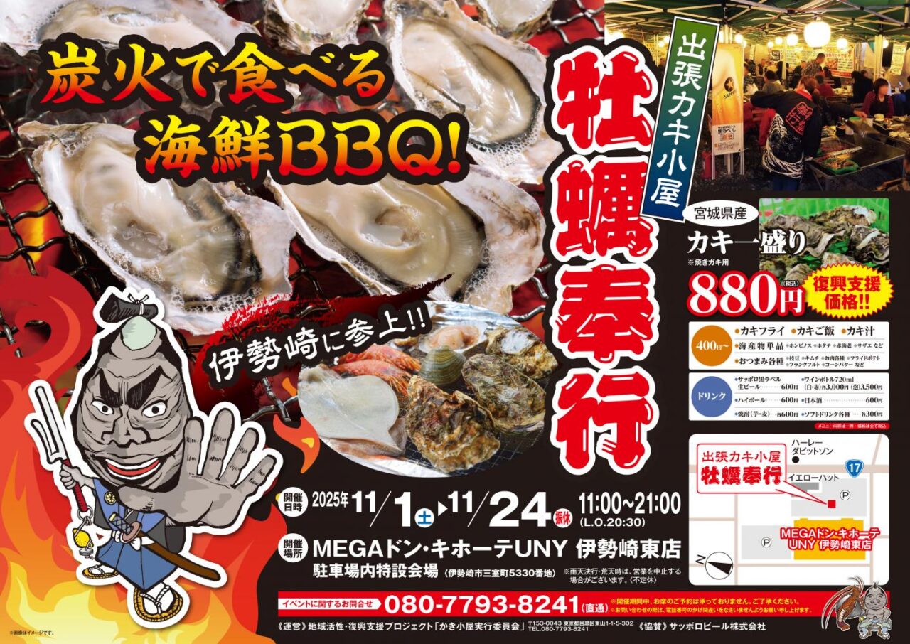 期間限定の「牡蠣小屋」が特別開催!場所は『MEGAドン・キホーテUNY伊勢崎東店』駐車場内特設エリア