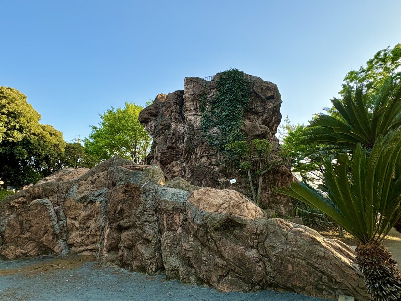 公園内には、岩山を模した「ぼうけん山」や広々とした芝生の広場、雑木林など、子供たちの冒険心や好奇心を掻き立てそうな遊具や自然を生かした設備などが揃っています。小さな子供向けの遊具もあり、まゆドーム内にも子供が遊べる施設があるそうです。